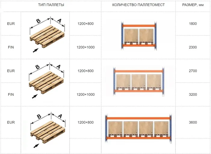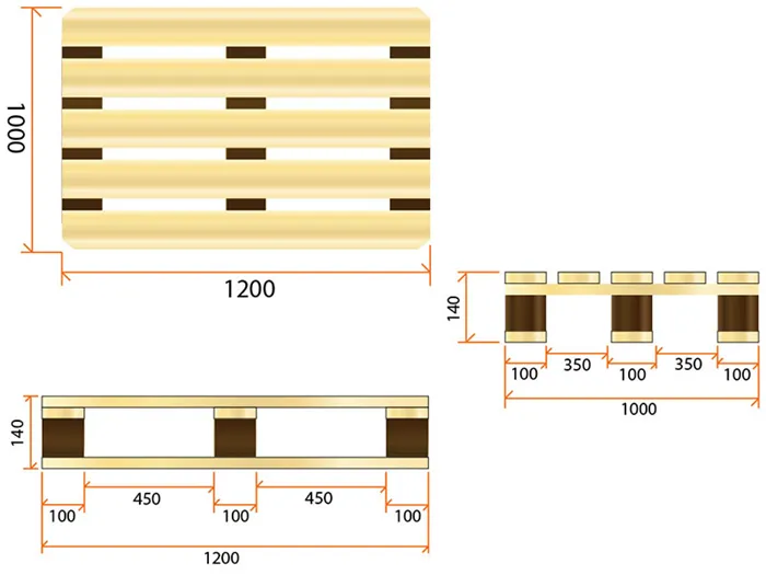 Существует три основных типа деревянных паллет. У всех них конструкция одинакова, различия заключаются лишь в размерах: