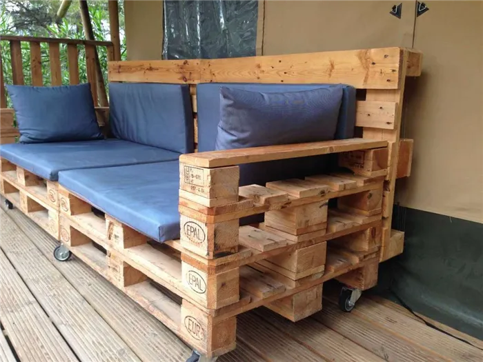 - высокий уровень прочности — нет поводов переживать, что диван не выдержит вес нескольких человек, ведь деревянные поддоны созданы для высокого давления, например, облегчённая европаллета 1200×800 может выдерживать до 2,5 тонн;