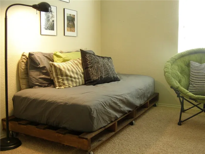 Однако сделать только каркас из деревянных поддонов недостаточно — важно дополнить его элементами, обеспечивающими комфорт. Поэтому необходимо либо самостоятельно изготовить, либо приобрести готовые матрасы и подушки, подходящие вашему изделию.