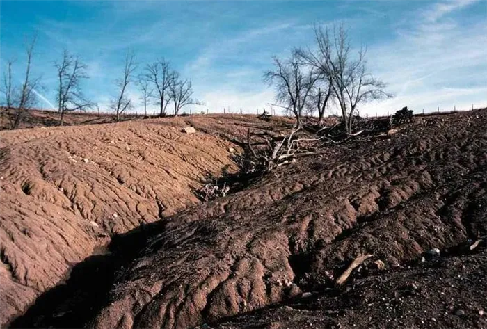 Обычно сильные дожди и резкое таяние снега приводят к поверхностному смыву плодородного горизонта. Усугубляет ситуацию отсутствие растительного покрова, который мог бы укреплять и защищать почву от смыва.