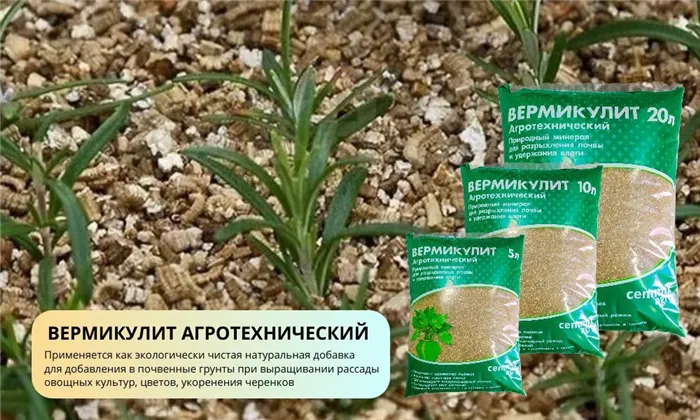 Вермикулит — это природный минерал. Благодаря термической обработке он приобретает уникальные сорбционные свойства и имеет нейтральную реакцию, что препятствует закислению грунта. Вермикулит способствует оптимизации водного и воздушного баланса в почвах, хорошо удерживая влагу в засушливые периоды, а также положительно воздействует на развитие корневой системы. Он накапливает некоторые элементы питания, такие как калий, магний и кальций, которые постепенно передаются растениям по мере необходимости.