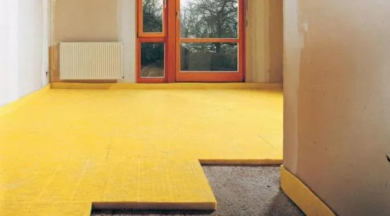 Плиты Изовер Плавающий пол являются негорючим материалом и в сочетании с наливным полом или стяжкой способны снизить уровень ударного шума до 37 дБ. В таких шумоизоляционных системах предусмотрена вертикальная ориентация волокон, что обеспечивает высокие прочностные характеристики.