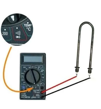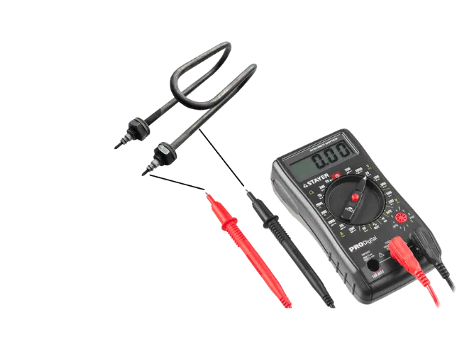 - Прикрепите щупы тестера к клеммам ТЭНа.