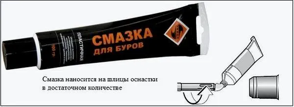 Перед установкой сверла в перфоратор важно обработать его хвостовик специальной смазкой, защищающей от коррозии. Процесс установки сверла выглядит следующим образом: