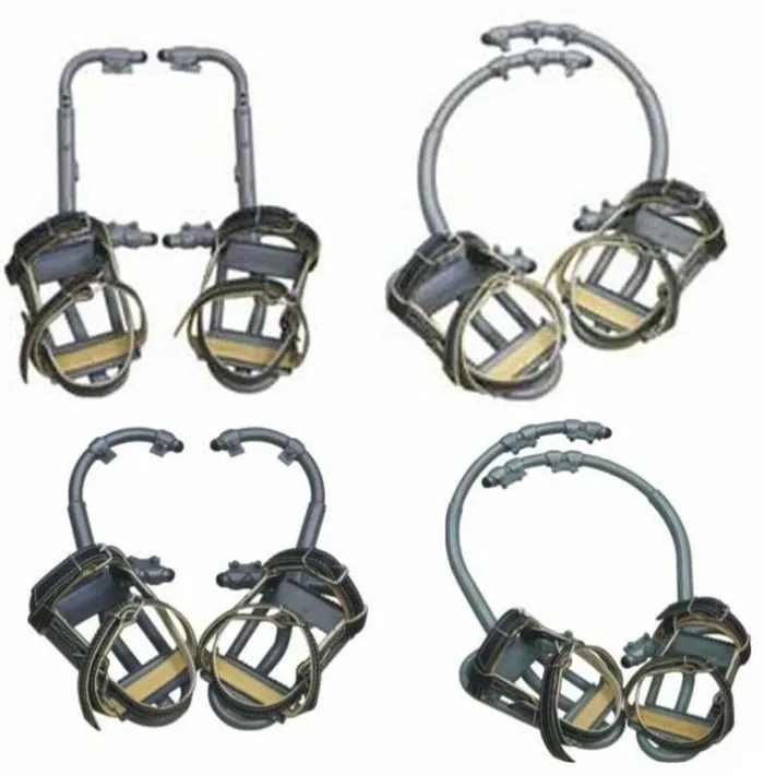 - Металлические дуги, охватывающие столб. У когтей — овальные, у лазов — прямоугольные.