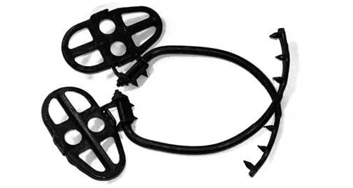 Наибольшему износу подвержены шипы, именно поэтому за ними и за ремнями для крепления следует тщательно следить в процессе эксплуатации этих приспособлений. Шипы обычно устанавливаются в передней (3 шипа) и задней (2 шипа) частях дуги.
