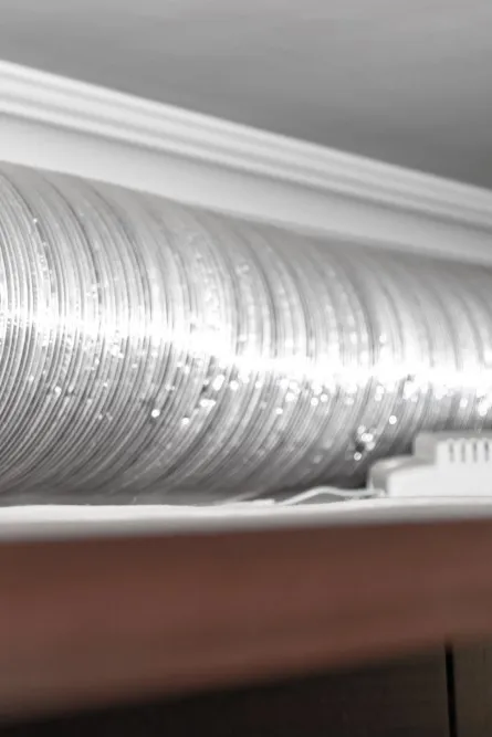 - Гибкие воздуховоды крепятся к потолку с помощью кронштейнов L- или Z-образной формы. Для открытых ПВХ-каналов подходят хомуты для дальнейшей фиксации;
