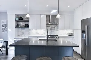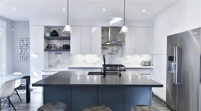 На заметку! Если дом находится на стадии строительства, рекомендуется заранее планировать расположение кухонной техники, при этом оставляя выводы для вентиляции и подключения к ней различных устройств. Например, при установке островной вытяжки воздуховод можно разместить посередине потолка, чтобы не тянуть короб через всю кухню.