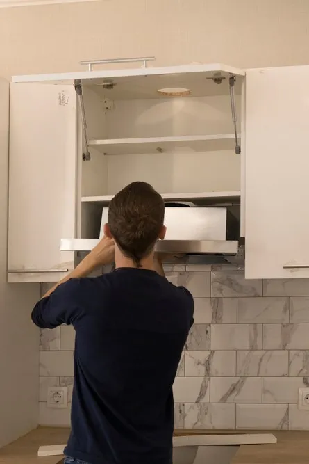Процесс установки вытяжки для кухни в шкаф начинается с подготовки самого шкафчика, что включает в себя следующие действия: