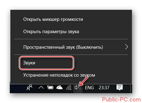 - В открывшемся контекстном меню выберите пункт Звуки.